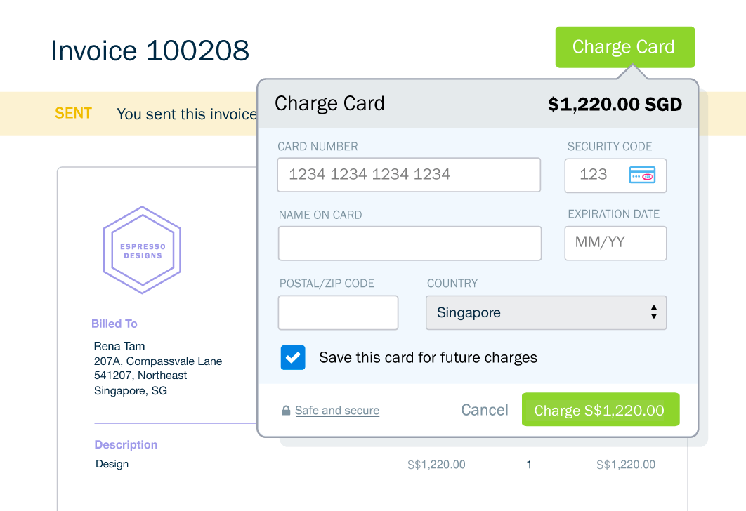 In Singapore, there are several payment options you can choose to accept through the FreshBooks online payment solution. FreshBooks integrates with many payment processors, so you can select the payment method that works best for you and your business. Whether you want to accept credit card payments or connect your bank account you can easily set up the method you prefer for easy payments no matter what. You can also set up multiple payment methods for different clients, depending on what suits them best.