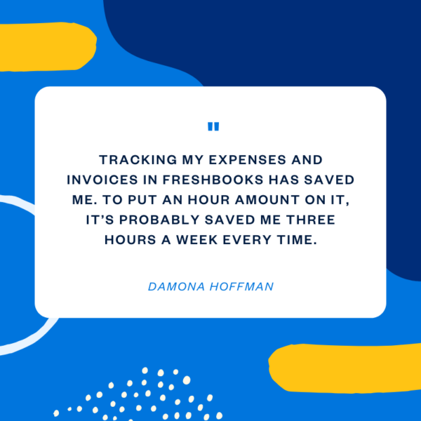 Damona: Tax season in particular always tends to give me major anxiety. Tracking my expenses and invoices in FreshBooks has saved me. To put an hour amount on it, it’s probably saved me three hours a week every time. I have about 16 bosses, so keeping track of those can get rather complicated. Invoicing quickly and having recurring clients is the biggest shortcut.