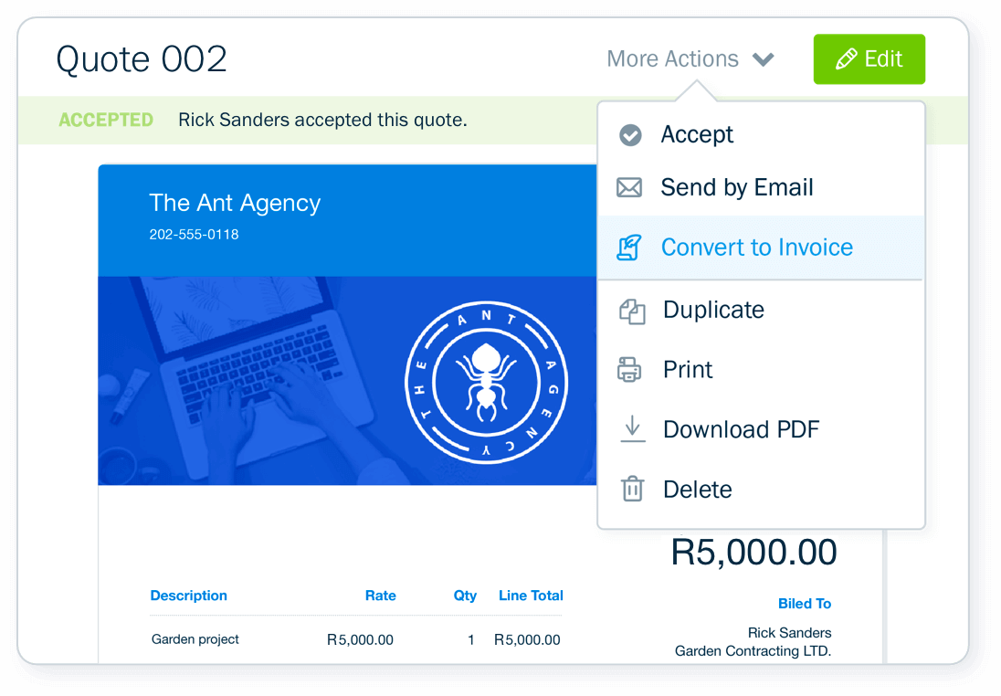 With FreshBooks, you can transform your custom estimates into ready-to-pay invoices in a flash. You’ll save time billing and pocket your money sooner.