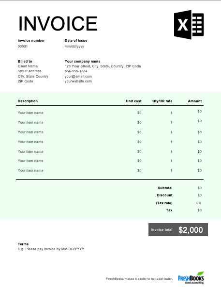 Using the free Excel invoice templates is a simple way to create invoices that can be filled in suited to the needs of your business. Download free invoice templates with FreshBooks in the format that suits you best, and get started on getting paid the right way.