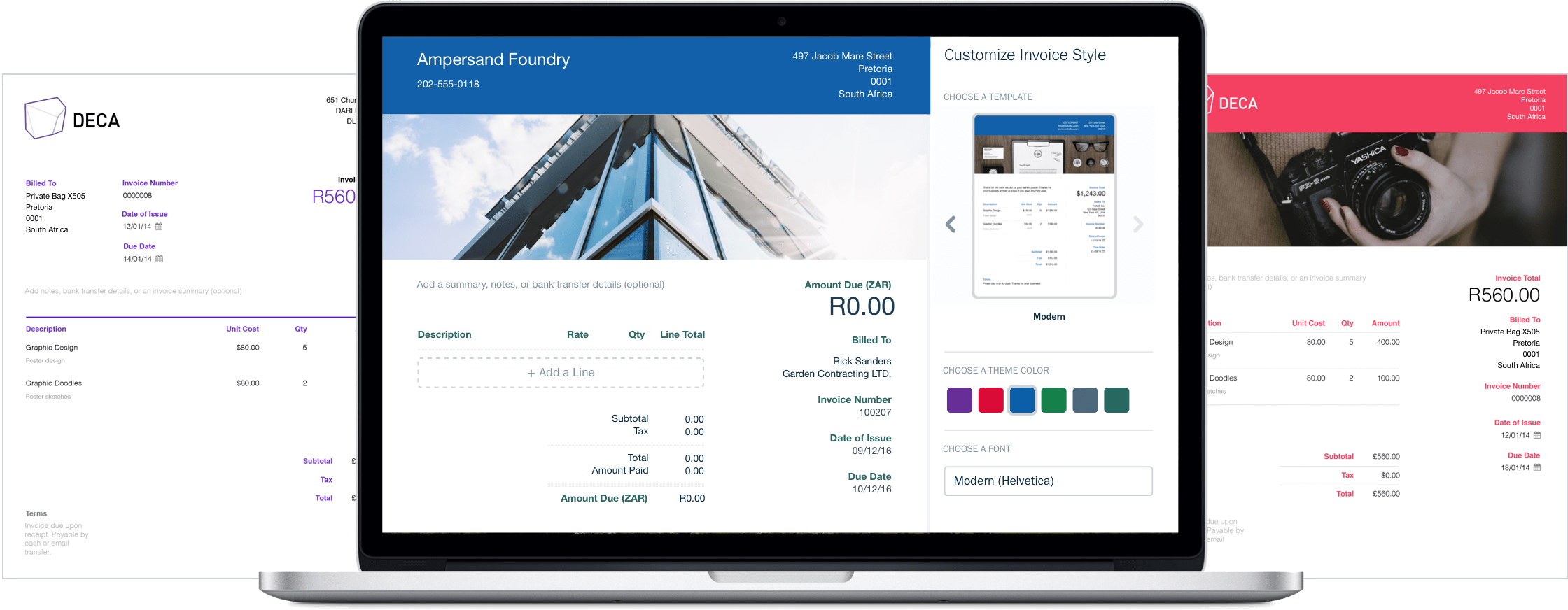 Absolutely, our FreshBooks invoice generator produces a product that is a lot more professional than an invoice template. Plus, you can customize the look and feel of your invoices to match your business’ brand, including the layout, font, color,imagery and even charge late fees.
