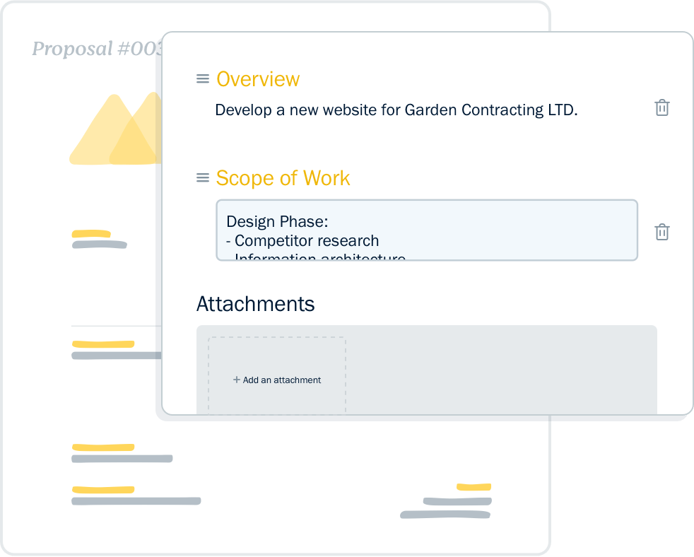Custom Proposals give your clients all the details, supported by images and attachments. Scope it out, outline their needs and how you meet them, then click send.